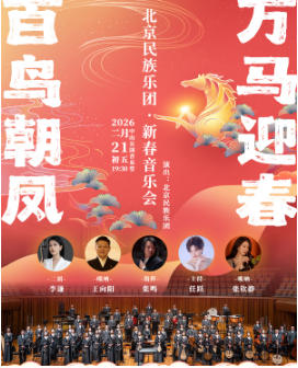百鸟朝凤·万马迎春—北京民族乐团·新春音乐会 时间:2026.02.21 场馆:北京市 | 中山音乐堂 票价:100/180/280/380/580 微信订票:18515362586 电话订票:010-66552100,010-66552258