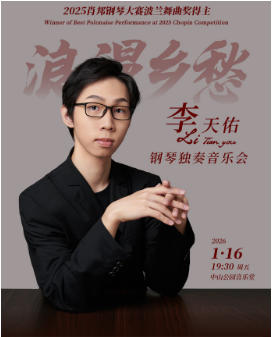 演出名称:2025肖邦钢琴大赛波兰舞曲奖得主 浪漫乡愁—李天佑钢琴独奏音乐会